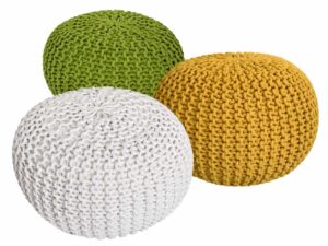 Pouf Set 3 Stück Ø 55 cm Bodenkissen Strickhocker Sitzhocker Sitzkissen Hocker nachhaltig Grobstrick neon & gelb & weiß