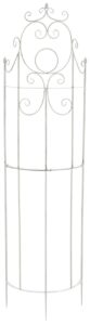 Rankgitter Lavendel – Die ideale RankhilfeSie erhalten hier ein exklusives Rankgitter. Das Rankgitter im rustikalen Landhausstil beeindruckt durch sein klassisches Design mit den liebevollen Verzierungen. Mit seiner gebogenen Form eignet es sich perfekt zur Gartengestaltung und ist nicht nur wie geschaffen Ihre Pflanzen dekorativ in Szene zu setzen, es macht auch allein stehend eine gute Figur. Das Modell Lavendel wurde aus Eisen handgefertigt. Das Produkt ist original verpackt und besteht aus 2 Teilen, welche miteinander verschraubt werden. Es muss lediglich in den Boden gesteckt werden. Es handelt sich um absolute Neuware. Ca. Abmessungen: Höhe: 200 cm Breite: 52,5 cm Tiefe: 23 cm Höhe Fuß: 20 cm Stabstärke: 1 cm