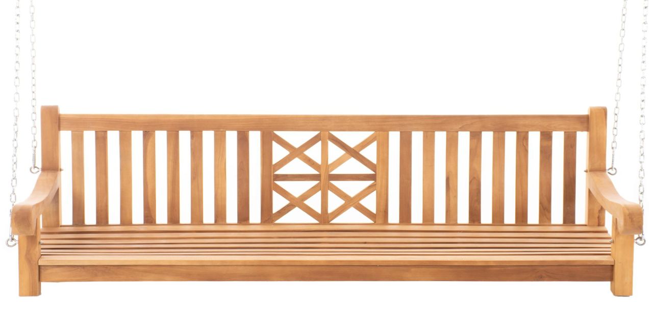 Schaukelbank Florida Einfach mal die Seele baumeln lassen! Die wunderschöne Schaukelbank Florida lädt zum entspannten Sitzen und Schaukeln ein! Sie strahlt in jedem Garten Gemütlichkeit und Stil aus. Ob alleine oder mit der ganzen Familie Sie sitzen gemütlich und genießen Ihre Ruhepause. Diese exklusive Schaukelbank aus Teakholz* wird zum absoluten Highlight in jedem Garten oder der Veranda. Die massive Bauweise der Schaukelbank garantiert eine lange Lebensdauer. Das Befestigungsmaterial (Ketten & Haken) ist im Lieferumfang enthalten. Ca. Maße: Gesamtbreite: 120 – 240cm Gesamthöhe Bank: 61 cm Gesamthöhe Bank + Kette: 240 cm Gesamttiefe: 59 cm Sitztiefe: 54 cm Höhe Rückenlehne: 42 cm Armlehnendicke: 7 cm Länge Armlehne: 63 cm Kettenlänge: 207 cm Max. Belastbarkeit: Breite 120 cm: 250 kg Breite 150 cm: 300 kg Breite 180 cm: 350 kg Breite 200 cm: 400 kg Breite 220 cm: 450 kg Breite 24…