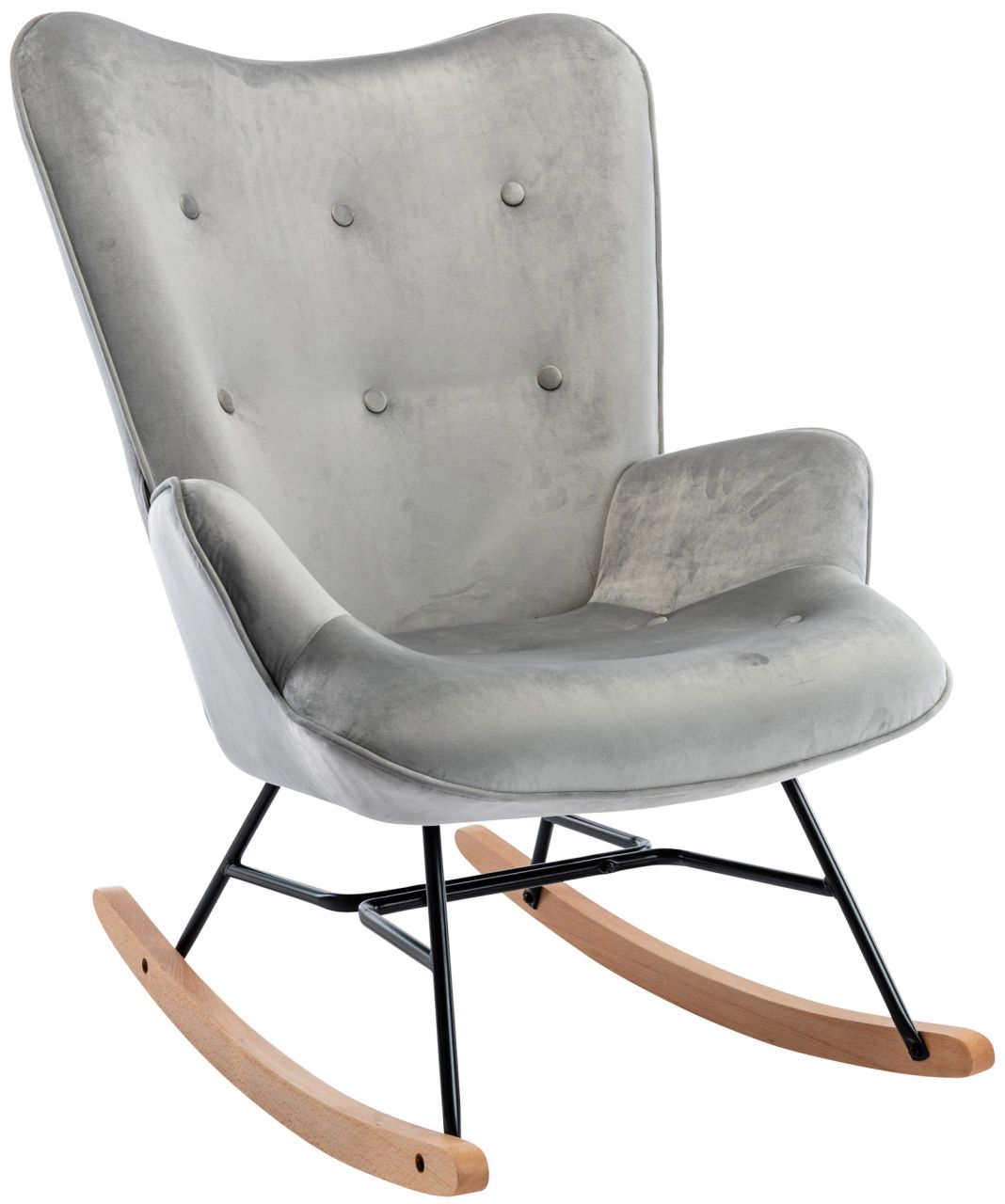 Schaukelstuhl Sanka Der Schaukelstuhl Sanka ist eine bequeme, solide und zugleich stilvolle Sitzgelegenheit für den täglichen Gebrauch. Das moderne Möbelstück fügt sich ideal in fast jedes Wohnzimmerambiente ein. Einen angenehmen Sitzkomfort verspricht die bequem gepolsterte Sitzschale mit Samtbezug. Die Knöpfe auf dem Rückenpolster setzen dabei modische Akzente. Die elegant geformten Kufen aus Buchenholz sind mit einem hochwertigen schwarz lackierten Metallgestell verschraubt, was dem Stuhl seine hohe Stabilität verleiht. Ein rundum wunderschönes Möbelstück an dem Sie lange Freude haben werden! Materialzusammensetzung: 100% Polyester Ca. Maße: Gesamthöhe: 98 cm Gesamtbreite: 71 cm Gesamttiefe: 88 cm Sitzhöhe: 48 cm Sitzfläche (BxT): 62 x 55 cm Höhe Rückenlehne: 64 cm Höhe Armlehne (vom Boden): 58 cm Max. Belastbarkeit: 136 kg Gewicht: 16 kg Sitz: Bezug: Samt Angenehme Sitzposition du…