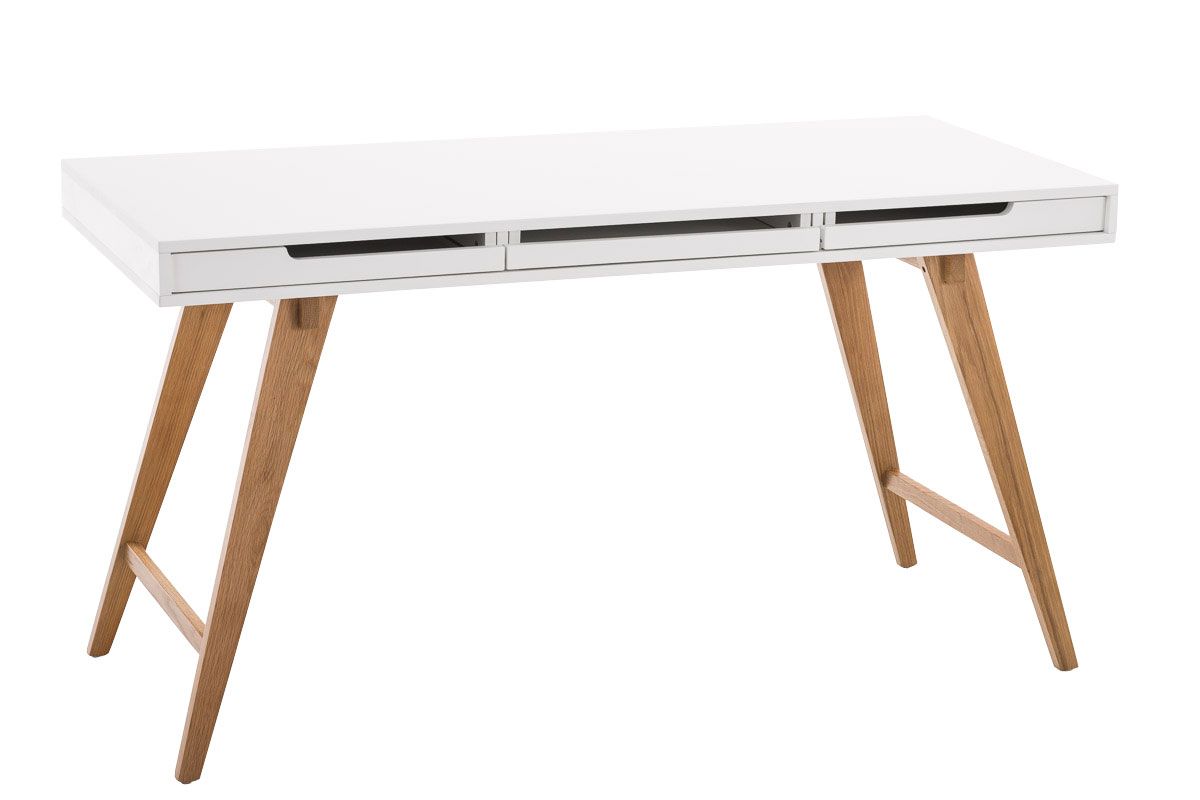Schreibtisch Porto V2 An diesem Schreibtisch lässt es sich sehr gut arbeiten! Nicht nur die große Arbeitsfläche bietet genug Platz, auch in den Schubalden haben Sie ausreichend Stauraum. Das harmonische Zusammenspiel der weiß lackierten Tischfläche aus MDF und den naturfarbenen Beinen aus Eichenholz verleiht jedem Wohnbereich ein ganz besonderes Flair. Ein stilvolles Design, was direkt ins Auge sticht. Unter der einladenden Arbeitsfläche bieten die grifflosen Schubladen genügend Stauraum für Ihre Unterlagen und Schreibutensilien. Dieser Schreibtisch ist ein echtes Schmuckstück für jede Wohnung von dem auch Ihre Freunde und Bekannte begeistert sein werden! Ca. Maße: 110 cm Gesamthöhe: 75 cm Gesamtbreite: 110 cm Gesamttiefe: 60 cm Arbeitsfläche (BxT): 110 x 60 cm Innenmaße Schublade (HxBxT): 4 x 49 x 35 cm 140 cm Gesamthöhe: 75 cm Gesamtbreite: 140 cm Gesamttiefe: 60 cm Arbeitsfläche (B…