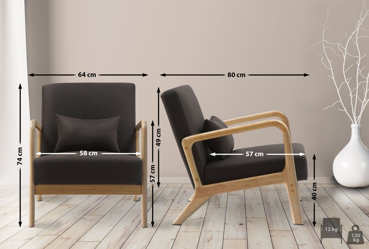 Sessel Hibbing Stoff-Bezug Der Sessel Hibbing verbindet Eleganz und Komfort in einem stilvollen Design. Der großzügige Sessel überzeugt mit einem strapazierfähigem Stoffbezug in modischen Farben sowie mit stabilen Beinen aus hellem Kautschukholz. Die hohe Rückenlehne steigert den Sitzkomfort zusammen mit den Holz-Armlehnen erheblich. Neben der üppigen Polsterung gehört auch ein Kissen für den Lendenwirbelbereich zu dem Relaxsessel Hibbing. Zum Entspannen, Lesen, Fernsehen sowie zum Sitzen in geselliger Runde ist der Polsterstuhl prädestiniert. Entsprechend ist der Lounge-Sessel eine tolle Wahl für Wohnzimmer, Schlafzimmer und Leseecke. Aber auch in Wartebereichen für Gäste und Kunden in öffentlichen und geschäftlichen Umgebungen ist diese Sitzgelegenheit geeignet. Der Sessel ist bedenkenlos bis 120 Kilogramm belastbar und Bodenschoner schützen empfindlichen Untergründe vor Beschädigun…