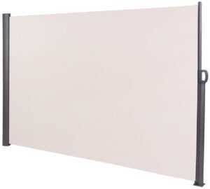 Sichtschutz Lovington Der Sichtschutz Lovington von CLP bewahrt Sie nicht nur vor ungewollten Blicken, sondern schützt auch effektiv vor Wind und Sonne, sodass einem ungestörten und erholsamen Verweilen in Ihrem Außenbereich nichts im Wege steht. Das blickdichte und strapazierfähige Polyester (280 g/m²) schafft vollkommene Privatsphäre für Ihren Garten und Ihre Terrasse. Dank PU-Beschichtung und Lichtschutzfaktor UV30+ ist der Sichtschutz absolut wettertauglich. Mit einer Lichtechtheit der Stufe 4 verblasst der Stoff bei andauernder Lichteinstrahlung nur äußerst langsam. Der Markisen-Kasten sowie die Bodenhalterung bestehen aus stabilem Aluminium, welches nicht rostet, während die mitgelieferten Bodenschrauben aus galvanisiertem Stahl bestehen. Bei Bedarf lässt sich der Sichtschutz schnell und einfach herausziehen und einrollen (empfohlen bei starkem Wind sowie heftigem Regen und Schn…