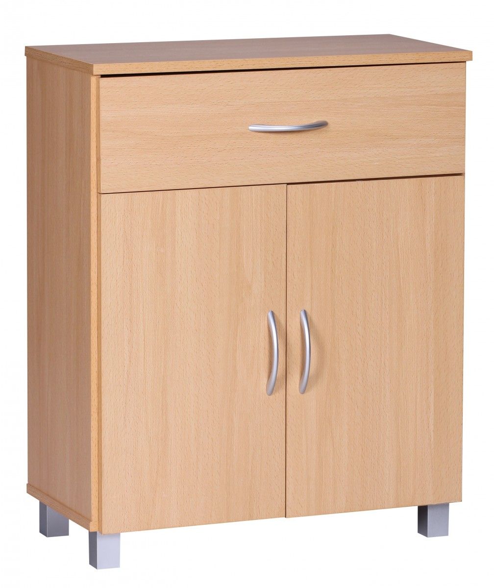 Sideboard Buche WL1.335 60x75x30cm Kommode mit Schublade und Türen, Kleine Moderne Anrichte Braun, Design Holz Schrank, Allzweckschrank mit Griffen, Kleiner Flurschrank Schmal