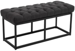 Sitzbank Amun Stoff-Bezug Die Sitzbank Amun überzeugt als bequeme Sitzmöglichkeit, die zugleich ein modernes Bild abgibt. Das gesteppte Polster ist mit pflegeleichtem und strapazierfähigem Stoff bezogen. Dabei integriert sich die Polsterbank flexibel und formschön in jeden Raum, ob im Wohnzimmer, im Flur, im Esszimmer oder dem Schlafzimmer. Die Bank verfügt über ein stabiles Gestell aus matt-schwarzem Metall. Querverstrebungen machen es derart stabil, sodass es bedenkenlos bis 150 Kilogramm belastet werden kann. Dabei werden empfindliche Böden dank der Bodenschoner nicht beschädigt. Materialzusammensetzung: 100 % Polyurethan Details: Gesamtbreite: 100 / 120 / 150 cm Gesamttiefe: 38 cm Gesamthöhe: 46 cm Gewicht: 11 / 16 / 22 kg Sitz: Bezug: Kunstleder Dickes Polster für besseren Sitzkomfort Stylisch gesteppter Sitzbezug Gestell: Material: Metall matt schwarz Stabiles Vierfußgestell Met…