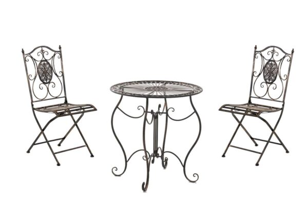 Sitzgruppe Aldeano Diese wunderschöne Sitzgruppe in nostalgischem Design ist ein echter Hingucker auf jeder Terrasse und in jedem Garten. Sie beeindruckt in ihrer grazilen Form, wie auch in den lie...