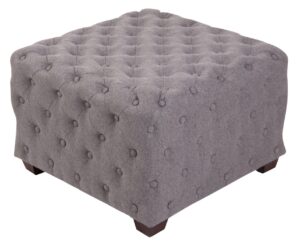Sitzhocker Nimes Stoff Holen Sie sich mit unserem vielseitig einsetzbaren Sitzhocker, aus hochwertigem Stoff, das elegante Chesterfield Design zu sich nach Hause. Die Oberfläche des Hockers wurde komplett mit auffälligen Zierknöpfen überzogen und passt hervorragend zum zeitlosen und klassischen Stil. Als Sitzgelegenheit oder aber auch als Fußhocker oder Couch- und Nachttisch macht er eine hervorragende Figur und verleiht jedem Ambiente einen eleganten Charme. Unter dem Gestell befinden sich Bodenschoner, die ein Zerkratzen des Bodens verhindern und dank der verarbeiteten Materialien ist der Hocker besonders pflegeleicht. Materialzusammensetzung: 100 % Polyester Ca. Maße: Gesamthöhe: 44 cm Gesamtbreite: 65 cm Gesamttiefe: 65 cm Sitzhöhe: 44 cm Sitzfläche: 65 x 65 cm Max. Belastbarkeit: 120 Kg Gewicht: 10 kg Sitz: Bezug: Stoff Hohe Sitzqualität Sitzfläche angenehm gepolstert Besonderhei…