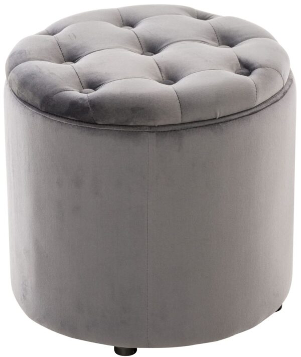 Sitzhocker Pantin – Stauraum mit Komfortfaktor! Dieser multifunktionelle gesteppte Sitzhocker mit Zierknöpfen ist stylisch und praktisch zugleich. Benutzen Sie den Hocker als Sitzgelegenheit oder um die Füße entspannt hochzulegen. Bei Nichtgebrauch kann dieser leichte Polsterhocker schnell verschoben oder verstaut werden. Durch den abnehmbaren Sitzdeckel können diverse Gegenstände in dem Sitzhocker verstaut werden. Dank der Polsterung lässt es sich jederzeit bequem sitzen. Die Bodenschoner unter dem Hocker verhindern ein zerkratzen des Bodens. Materialzusammensetzung: 100% Polyester Ca. Maße: Gesamthöhe: 42 cm Gesamtbreite: 44 cm Gesamttiefe: 44 cm Sitzfläche Ø: 42 cm Max. Belastbarkeit: 120 kg Sitz: Bezug: Samt Sitzfläche angenehm gepolstert Komfortables Sitzen auch nach mehreren Stunden Gestell: Bodenschoner Lange Lebensdauer Solide Verarbeitung Besonderheiten: Stylisch gesteppter S…