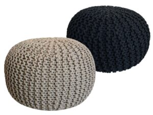 Sitzhocker Pouf SET 2 Stück Ø 55 cm H 37 cm Strickhocker Bodenkissen Grobstrick-Optik nachhaltig beige & anthrazit