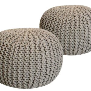 Sitzhocker Pouf SET 2 Stück Ø 55 cm H 37 cm Strickhocker Bodenkissen Grobstrick-Optik nachhaltig beige & mint