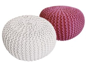 Sitzhocker Pouf SET 2 Stück Ø 55 cm H 37 cm Strickhocker Bodenkissen Grobstrick-Optik nachhaltig weiß & pink