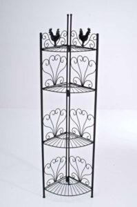 Eckregal Marie Das Modell “Marie” ist nicht aus dünnwandigem Blech, sondern aus extrem stabilem und dickem Eisenrohr. Die Qualität ist sehr gut. Es wird aus wenigen Teilen zusammengesetzt und ist sehr stabil. Eine Beschichtung (pulverbeschichtetes Eisen) macht dieses Regal sehr hochwertig und extrem langlebig. Die liebevollen Verzierungen im Landhausstil sehen sehr schön aus und verleihen einen antiken Charakter. Das Regal kann bei Bedarf zusammengeklappt werden! Ca. Maße: Gesamttiefe: 31 cm Gesamthöhe: 151 cm Höhe Regalböden: 127, 97, 53, 10 cm Ablageflächen Radius: 29 cm Abstand zwischen Ablageflächen: 44 cm (Abstand zw. den oberen: 30 cm) Rohrdurchmesser: 15 mm