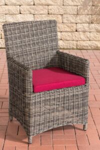 Dieser Stuhl ist komplett aus Polyrattan geflochten. Das Gestell besteht aus 100% rostfreiem Aluminium. Es handelt sich um ein Markenprodukt von höchster Qualität an dem Sie lange Freude haben werden. Die Kissen werden GRATIS mit geliefert! Materialzusammensetzung 100% Polyester Ca. Maße: Höhe: 91 cm Breite: 59 cm Tiefe: 60 cm Sitzhöhe: 44 cm zzgl. 5,5 cm Sitzkissen Sitzfläche (BxT): 47 x 47 cm Höhe Armlehne: 63 cm Breite Armlehne: 6 cm Materialien und Verarbeitung Dieser exklusive Gartengarnitur erfüllt nicht nur optisch höchste Ansprüche auch die in Handarbeit verwendeten Materialien entsprechen besten Qualitätsstandards und gewährleisten Stabilität und Langlebigkeit. Das besonders gut für die Verwendung im Außenbereich geeignete UV-beständige Material Polyrattan sieht aus wie herkömmliches Rattangeflecht, ist aber viel robuster. Die hochwertig verarbeiteten Polyrattanfasern sind …