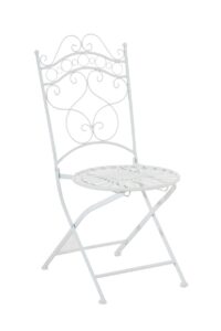 Stuhl Indra Dieser wunderschöne Stuhl in nostalgischem Design ist ein echter Hingucker auf jeder Terrasse und in jedem Garten. Er beeindruckt in seiner grazilen Form, wie auch in den liebevoll handgefertigten Details der Verzierungen. Er eignet sich perfekt um Ihrer Gartengestaltung eine besondere Note zu geben und ist wie geschaffen Ihren lauschigen Lieblingsplatz im Garten mit seinem Charme aus längst vergangenen Zeiten zu verschönern. Das Produkt wurde aus Eisen handgefertigt und ist daher extrem stabil. Die Oberfläche ist mit in Handarbeit nachempfundener antiker Patina veredelt. Dieses edle Designstück ist absolut neu und ergänzt sich hervorragend mit allen Metalltischen in unserem Shop. Ca. Maße: Gesamthöhe: 92 cm Gesamtbreite: 40 cm Gesamttiefe: 50 cm Sitzhöhe: 43,5 cm Sitzfläche: 40 x 40 cm Höhe Rückenlehne: 51 cm