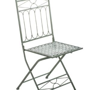 Stuhl Indra Dieser wunderschöne Stuhl in nostalgischem Design ist ein echter Hingucker auf jeder Terrasse und in jedem Garten. Er beeindruckt in seiner grazilen Form, wie auch in den liebevoll handgefertigten Details der Verzierungen. Er eignet sich perfekt um Ihrer Gartengestaltung eine besondere Note zu geben und ist wie geschaffen Ihren lauschigen Lieblingsplatz im Garten mit seinem Charme aus längst vergangenen Zeiten zu verschönern. Das Produkt wurde aus Eisen handgefertigt und ist daher extrem stabil. Die Oberfläche ist mit in Handarbeit nachempfundener antiker Patina veredelt. Dieses edle Designstück ist absolut neu und ergänzt sich hervorragend mit allen Metalltischen in unserem Shop. Ca. Maße: Gesamthöhe: 92 cm Gesamtbreite: 40 cm Gesamttiefe: 50 cm Sitzhöhe: 43,5 cm Sitzfläche: 40 x 40 cm Höhe Rückenlehne: 51 cm