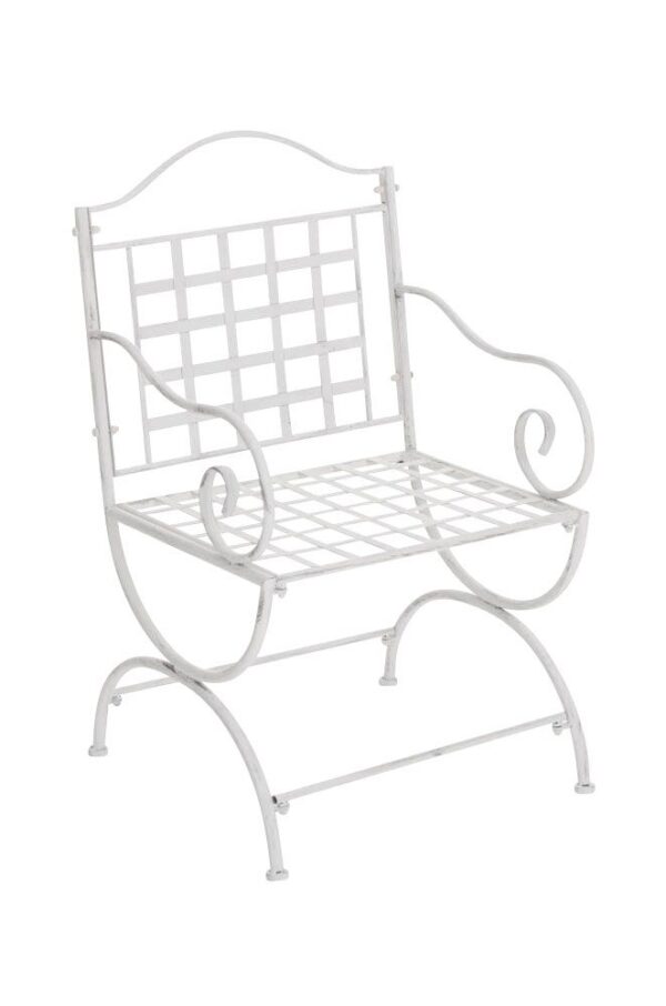 Stilverliebt in Stuhl Lotta Dieser wunderschöne Stuhl in nostalgischem Design ist ein echter Hingucker auf jeder Terrasse und in jedem Garten. Er beeindruckt in seiner grazilen Form, wie auch in den liebevoll handgefertigten Details der Verzierungen. Er eignet sich perfekt um Ihrer Gartengestaltung eine besondere Note zu geben und ist wie geschaffen Ihren lauschigen Lieblingsplatz im Garten mit seinem Charme aus längst vergangenen Zeiten zu verschönern. Das Produkt wurde aus Eisen handgefertigt und daher extrem stabil. Die Oberfläche ist mit in Handarbeit nachempfundener antiker Patina veredelt. Dieses edle Designstück ist absolut neu und ergänzt sich hervorragend mit allen Metalltischen in unserem Shop. Ca. Abmessungen: Gesamthöhe: 92 cm Gesamtbreite: 56 cm Gesamttiefe: 53 cm Sitzhöhe: 43 cm Sitztiefe: 43 cm Höhe Rückenlehne: 51 cm Höhe Armlehne (hinten): 65,5 cm Höhe Armlehne (vorn)…