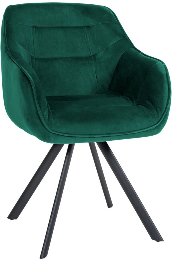 Esszimmerstuhl Russel Der Esszimmerstuhl Russel kann in Samt oder antikem Stoff erworben werden und verleiht zeitgemäßen Räumen eine gemütliche Atmosphäre. Er zieht alle Blicke auf sich, egal in welchem Raum er steht. Dank seiner ergonomisch geformten Rückenlehne und der großzügigen Polsterung bietet er unvergleichlichen Sitzkomfort, der auch bei langen Sitzperioden anhält. Die Auswahl an pflegeleichten Materialien gewährleistet außerdem eine mühelose Reinigung des Stuhls jederzeit. Der Stuhl wird von einem modernen 4-Fuß Metallgestell getragen und fügt sich äußerst vorteilhaft in jede Umgebung ein. Um den Boden vor unschönen Kratzern zu schützen, sind Bodenschoner an den Füßen angebracht. Dieser Stuhl vereint nicht nur ästhetisches Design mit außergewöhnlichem Komfort, sondern zeigt auch praktische Rücksichtnahme auf die Langlebigkeit Ihrer Möbel. Die Drehbarkeit um 90° nach links un…