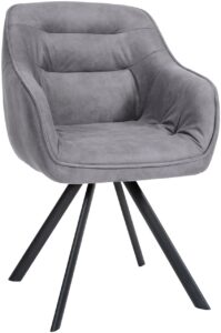 Esszimmerstuhl Russel Der Esszimmerstuhl Russel kann in Samt oder antikem Stoff erworben werden und verleiht zeitgemäßen Räumen eine gemütliche Atmosphäre. Er zieht alle Blicke auf sich, egal in welchem Raum er steht. Dank seiner ergonomisch geformten Rückenlehne und der großzügigen Polsterung bietet er unvergleichlichen Sitzkomfort, der auch bei langen Sitzperioden anhält. Die Auswahl an pflegeleichten Materialien gewährleistet außerdem eine mühelose Reinigung des Stuhls jederzeit. Der Stuhl wird von einem modernen 4-Fuß Metallgestell getragen und fügt sich äußerst vorteilhaft in jede Umgebung ein. Um den Boden vor unschönen Kratzern zu schützen, sind Bodenschoner an den Füßen angebracht. Dieser Stuhl vereint nicht nur ästhetisches Design mit außergewöhnlichem Komfort, sondern zeigt auch praktische Rücksichtnahme auf die Langlebigkeit Ihrer Möbel. Die Drehbarkeit um 90° nach links un…