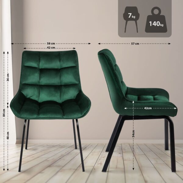 Esszimmerstuhl Saranda Der Esszimmerstuhl Saranda ist eine bequeme und zugleich stilvolle Sitzgelegenheit für für vielseitige Einsätze in Küche, Esszimmer und Wohnbereich. Auch für den gewerblichen Gebrauch eignet sich der Stuhl. Der Stuhl verfügt über eine großzügig gepolsterte Sitzfläche mit stilvollem Steppmuster. Das Polster ermöglicht komfortables Sitzen auch über einen längeren Zeitraum hinaus. Ergänzt wird der Sitzkomfort durch die Rückenlehne. Das robust konstruierte Vierfußgestell aus Metall, verspricht Stabilität und sicheren Stand. Mit bis zu 140 Kilogramm kann der Polsterstuhl bedenkenlos belastet werden. Die Bodenschoner unter den Stuhlbeinen beugen Beschädigungen empfindlicher Böden vor. Details: Gesamthöhe: 84 cm Gesamtbreite: 58 cm Gesamttiefe: 57 cm Sitzhöhe: 48 cm Sitzfläche (B x T): 42 x 42 cm Höhe Rückenlehne: 36 cm Max. Belastbarkeit: 140 kg Gewicht: 7 kg Material…