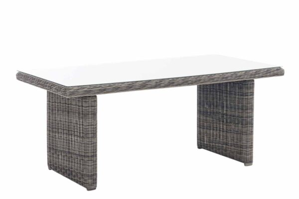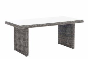 Garten Esstisch Fontana Die kunstvoll geflochtene und auch am hohen Rand aufwendig gearbeitete Tischplatte bietet viel Platz für Kulinarisches. Dazu ist sie pflegeleicht mit einer seitlich etwas ab...