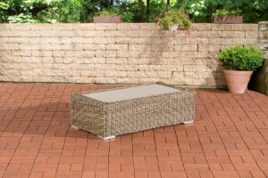 Lounge Tisch Madeira Das Design dieser kompakten Terrassen-Möbel überzeugt mit allen Ecken und Kanten: Die modern kastige Optik mit dem ringsum bodentief geflochtenen Polyrattan-Material strahlt St...
