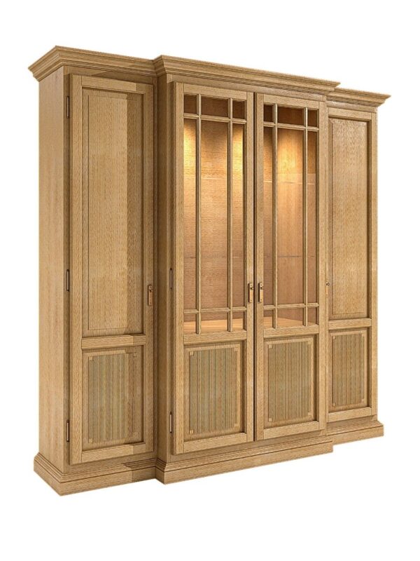 Vitrine Wohnwand 4-türig Duett 214 x 212 cm Pinie massiv Pinie karamell mit Beleuchtung