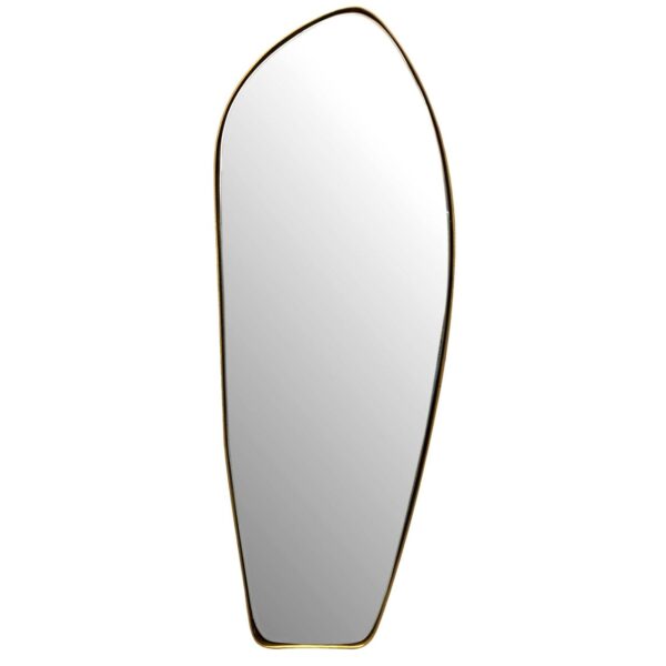 Design Moderner Wandspiegel in asymmetrischer Form Unförmiger Rahmen umschließt die Spiegelfläche Aufgrund des Designs in vielen Räumen einsetzbar Abmessungen Breite: 33 cm Höhe: 90 cm Tiefe: 2,5 cm Stärke der Spiegelfläche: 6 mm Farbe Rahmen: Goldfarben Besonderheiten Jeder Flurspiegel wurde in Handarbeit gefertigt und ist somit ein absolutes Unikat Dynamische und moderne Note durch die Freiform Zwei Löcher auf der Rückseite des Spiegels dienen als Vorrichtung zur Wandmontage Horizontale und vertikale Montage möglich Material Spiegelfläche: Glas Rahmen: lackiertes Eisen Lieferumfang Ein Wandspiegel ohne Dekoration Montagematerial für die Wandbefestigung ist nicht im Lieferumfang enthalten, da dieses von der Wandbeschaffenheit abhängig ist Montage Lieferzustand: komplett montiert und sicher verpackt Pflegehinweise Die Spiegelfläche bitte m…