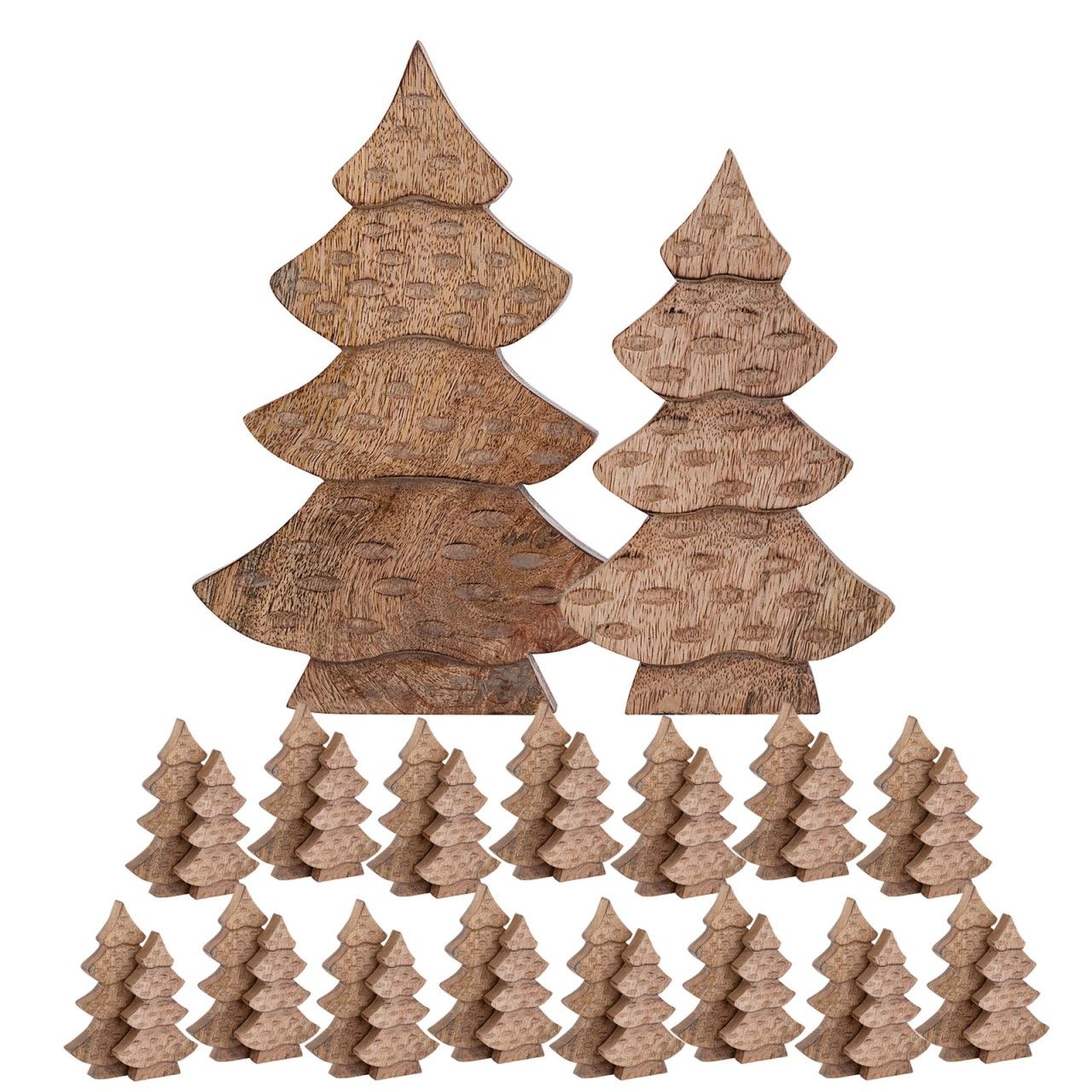 Dekofigur Baum 2er Set Holzfigur H23/20cm Masterbox 16-teilig Weihnachtsdekoration Mangoholz